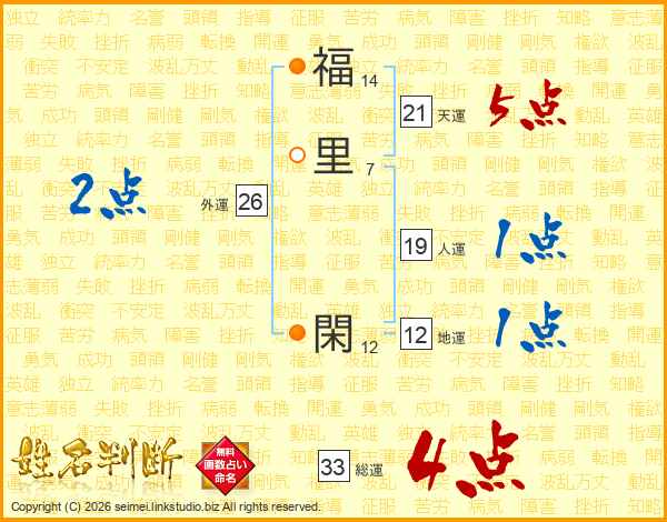 福里閑さんの総運は33画の4点!