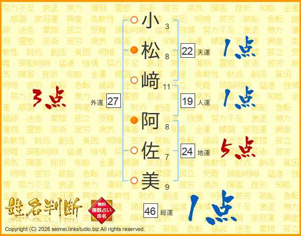 小松﨑阿佐美さんの総運は46画の1点!