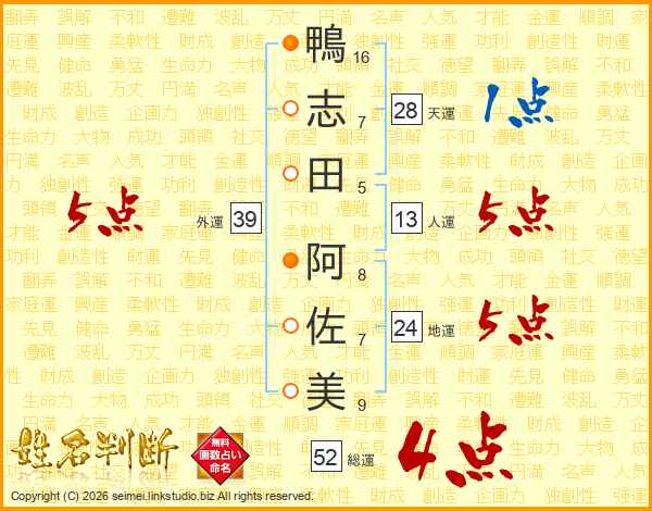 鴨志田阿佐美さんの総運は52画の4点!