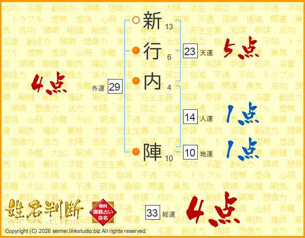 新行内陣さんの総運は33画の4点!
