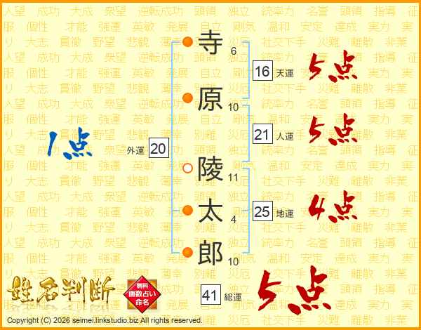 寺原陵太郎さんの天運は16画の5点!