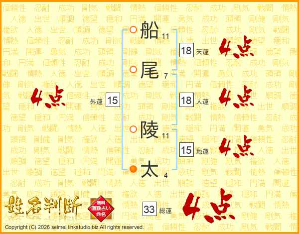 船尾陵太さんの天運は18画の4点!