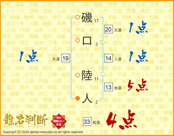 磯口陸人さんの総運は33画の4点!