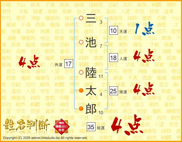 三池陸太郎さんの地運は25画の4点!