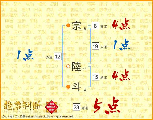 宗陸斗さんの総運は23画の5点!