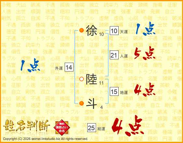 徐陸斗さんの総運は25画の4点!