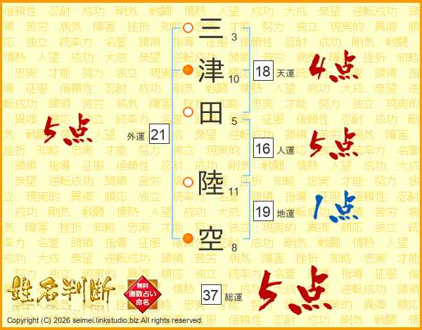 三津田陸空さんの総運は37画の5点!