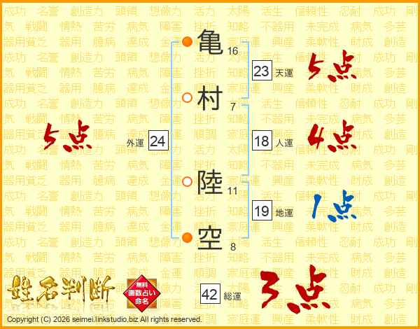 亀村陸空さんの外運は24画の5点!