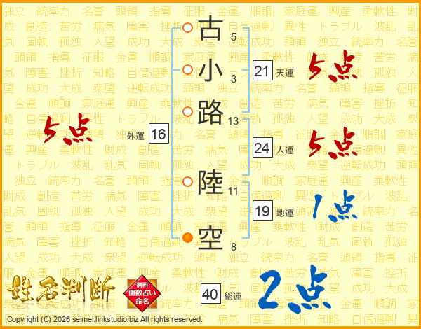 古小路陸空さんの天運は21画の5点!
