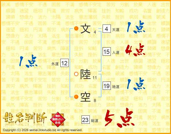 文陸空さんの総運は23画の5点!