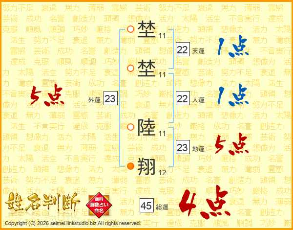 埜埜陸翔さんの総運は45画の4点!
