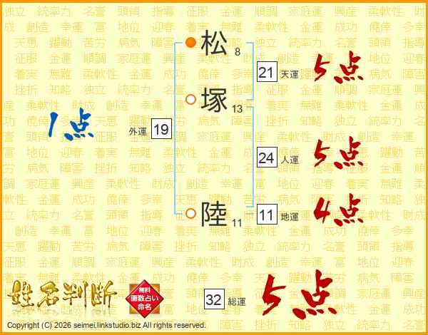 松塚陸さんの総運は32画の5点!