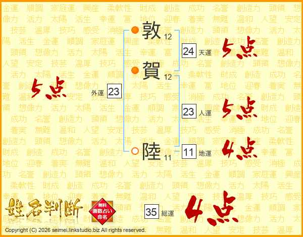 敦賀陸さんの人運は23画の5点!