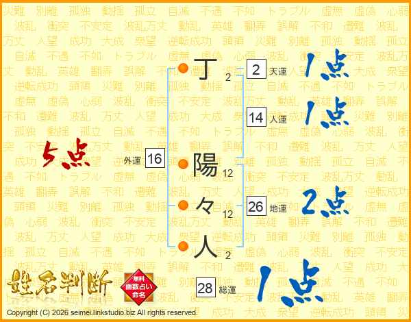 丁陽々人さんの総運は28画の1点!