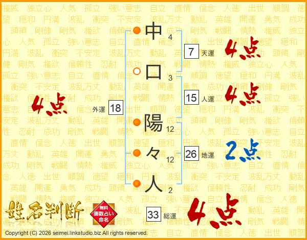 中口陽々人さんの総運は33画の4点!