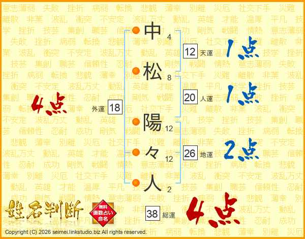 中松陽々人さんの総運は38画の4点!