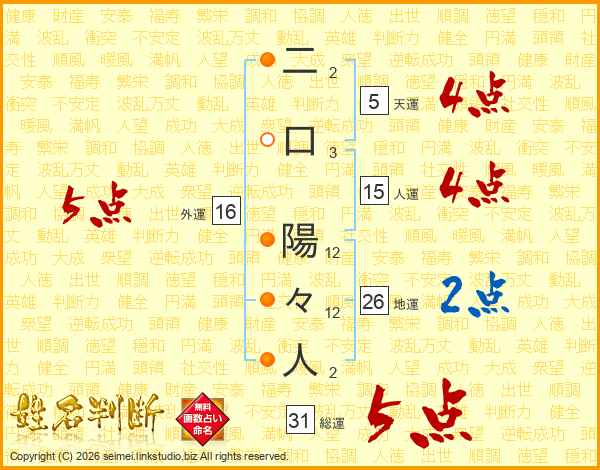 二口陽々人さんの総運は31画の5点!