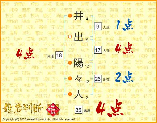 井出陽々人さんの総運は35画の4点!