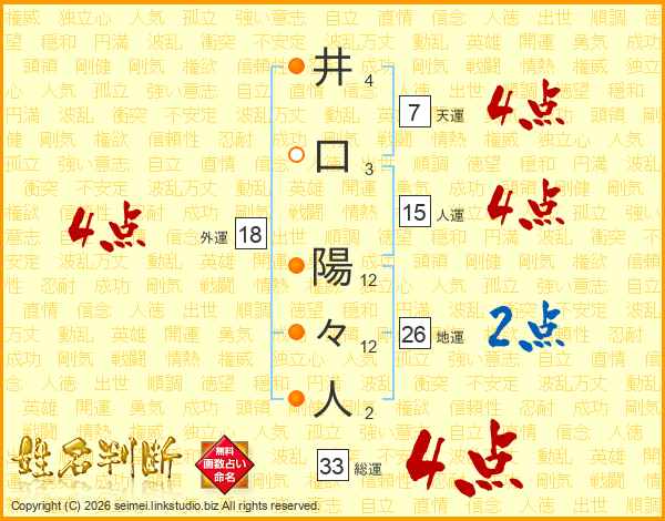 井(4画)口(3画) 陽(12画)々(12画)人(2画)