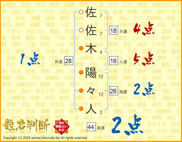 佐佐木陽々人さんの総運は44画の2点!
