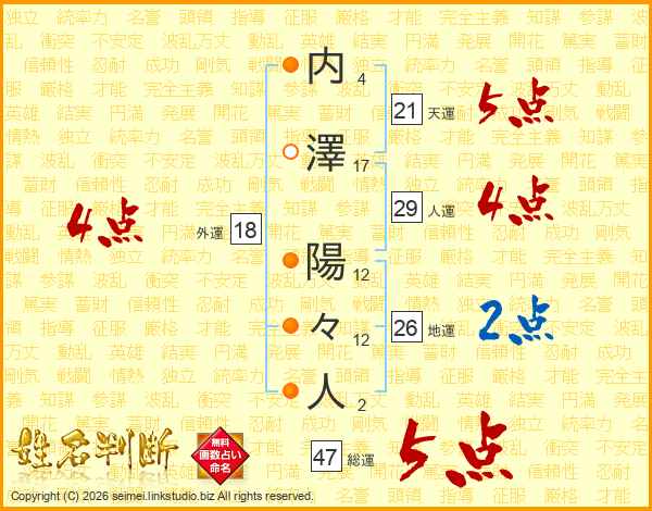 内澤陽々人さんの総運は47画の5点!