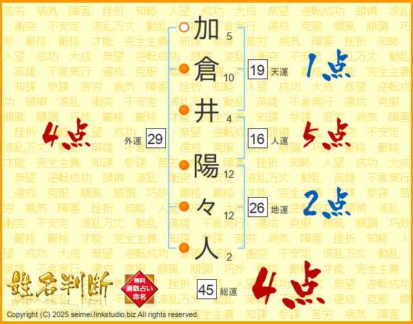 加倉井陽々人さんの総運は45画の4点!