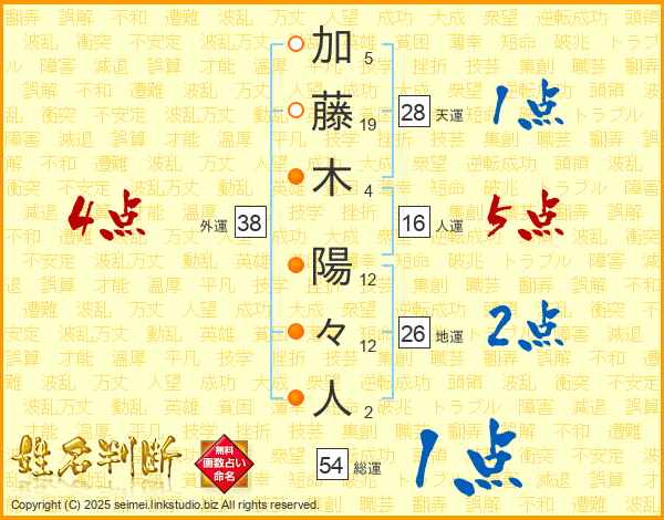 加(5画)藤(19画)木(4画) 陽(12画)々(12画)人(2画)