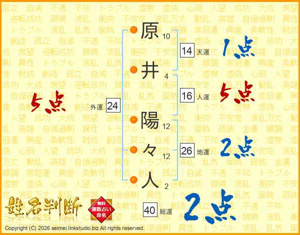 原(10画)井(4画) 陽(12画)々(12画)人(2画)