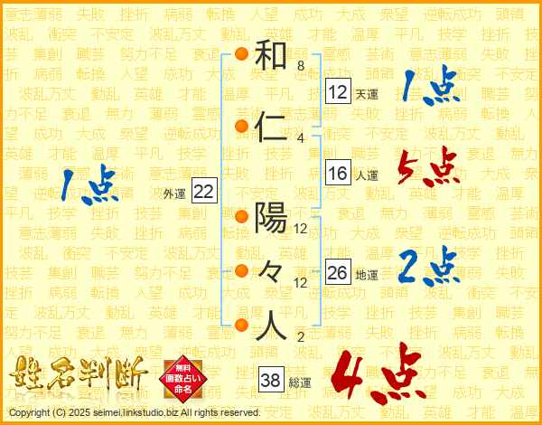 和(8画)仁(4画) 陽(12画)々(12画)人(2画)