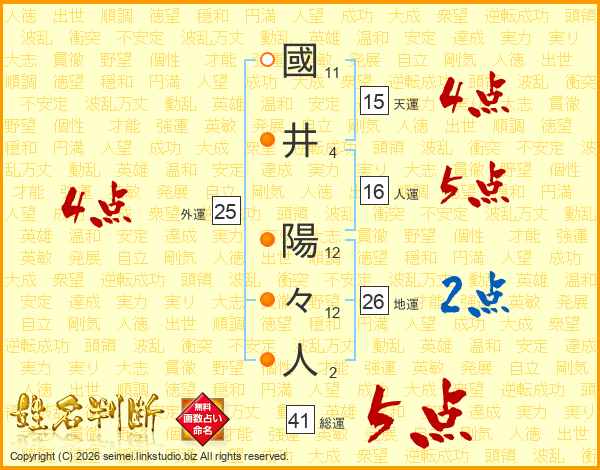 國(11画)井(4画) 陽(12画)々(12画)人(2画)