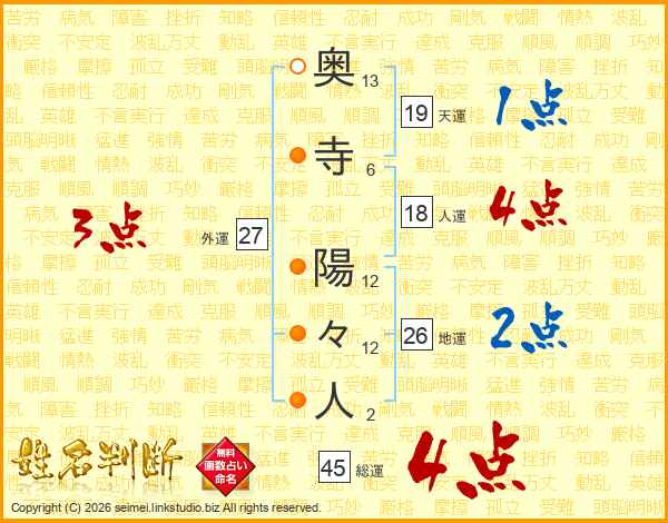 奥寺陽々人さんの総運は45画の4点!