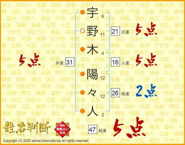 宇野木陽々人さんの総運は47画の5点!