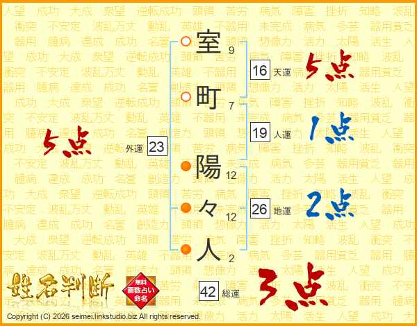 室(9画)町(7画) 陽(12画)々(12画)人(2画)