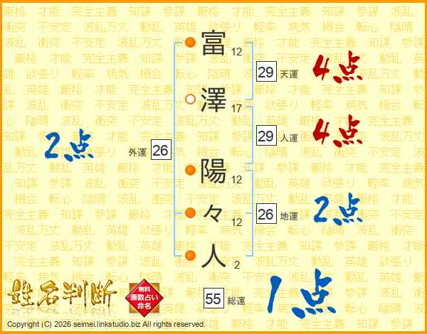 富澤陽々人さんの人運は29画の4点!