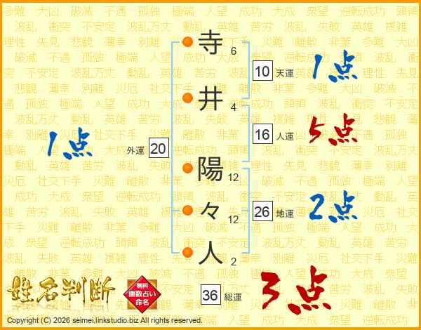 寺井陽々人さんの地運は26画の2点!