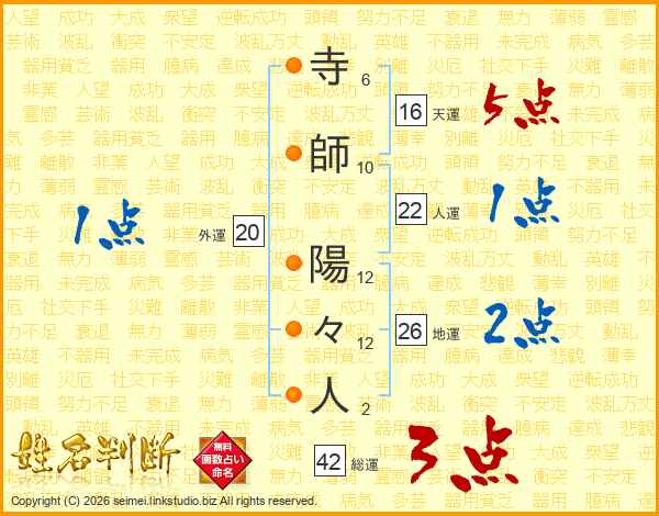 寺師陽々人さんの地運は26画の2点!