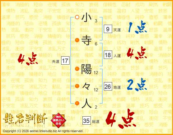 小寺陽々人さんの総運は35画の4点!