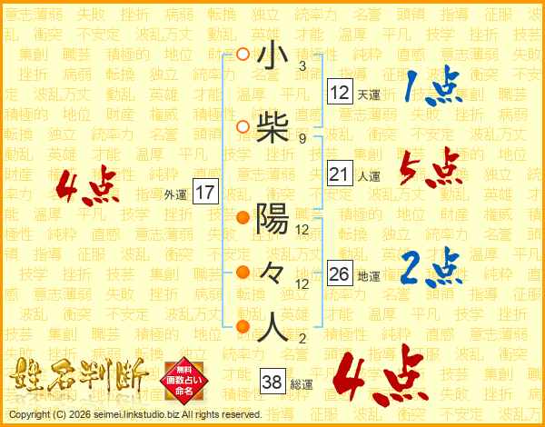 小柴陽々人さんの総運は38画の4点!