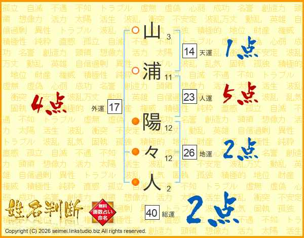 山(3画)浦(11画) 陽(12画)々(12画)人(2画)