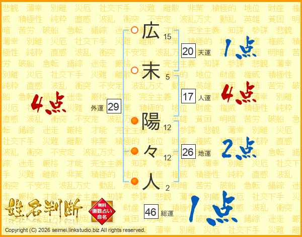 広末陽々人さんの総運は46画の1点!