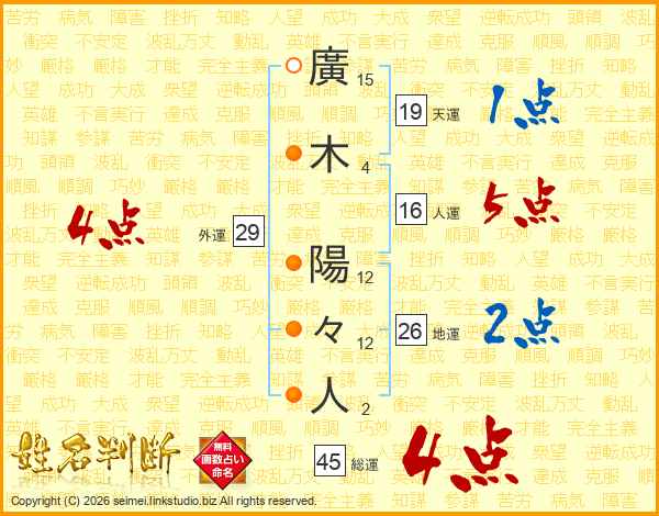 廣木陽々人さんの総運は45画の4点!