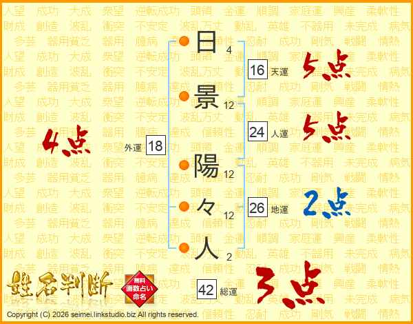 日景陽々人さんの総運は42画の3点!