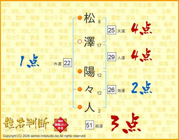 松澤陽々人さんの地運は26画の2点!