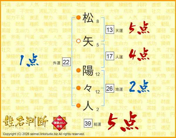 松矢陽々人さんの総運は39画の5点!