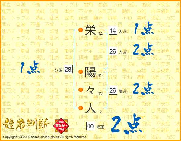栄陽々人さんの人運は26画の2点!