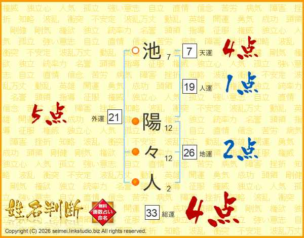 池陽々人さんの総運は33画の4点!