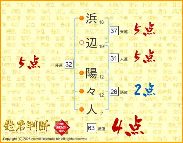 浜(18画)辺(19画) 陽(12画)々(12画)人(2画)