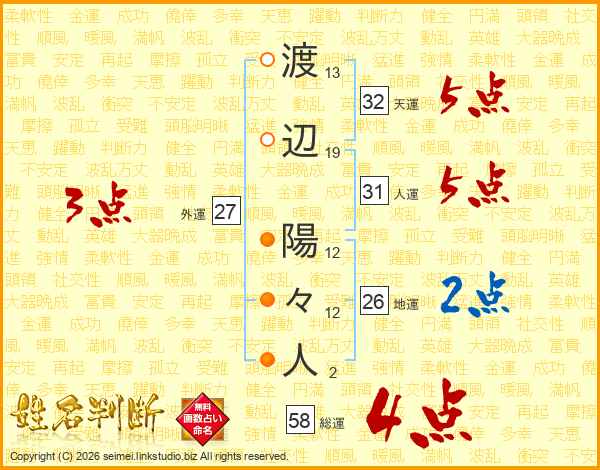 渡辺陽々人さんの総運は58画の4点!