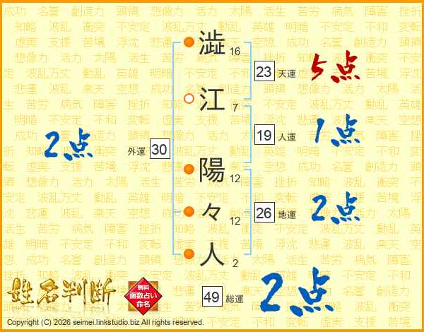澁江陽々人さんの総運は49画の2点!