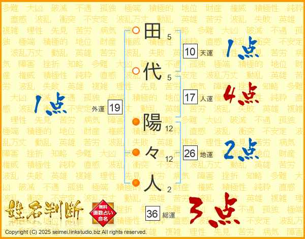 田代陽々人さんの人運は17画の4点!